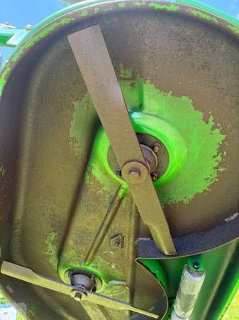 John Deere finish mower deck. Comes with hardware. Deck is in good, solid condition. Serial #: TC0072B300594 Calls only, no texts.